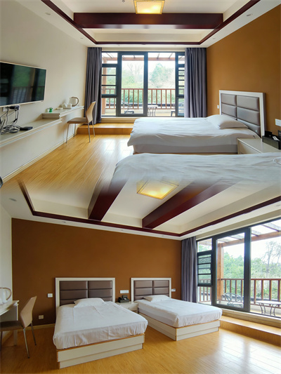 周边安静,山景很美,住的舒服,边上登山步道可以爬爬山,不错。